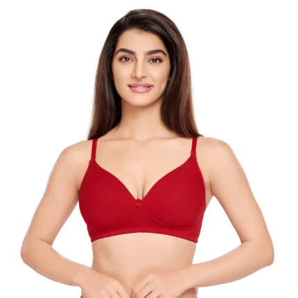 Cotton Lycra Basic Plain Padded T-Shirt Bra With Removable Straps