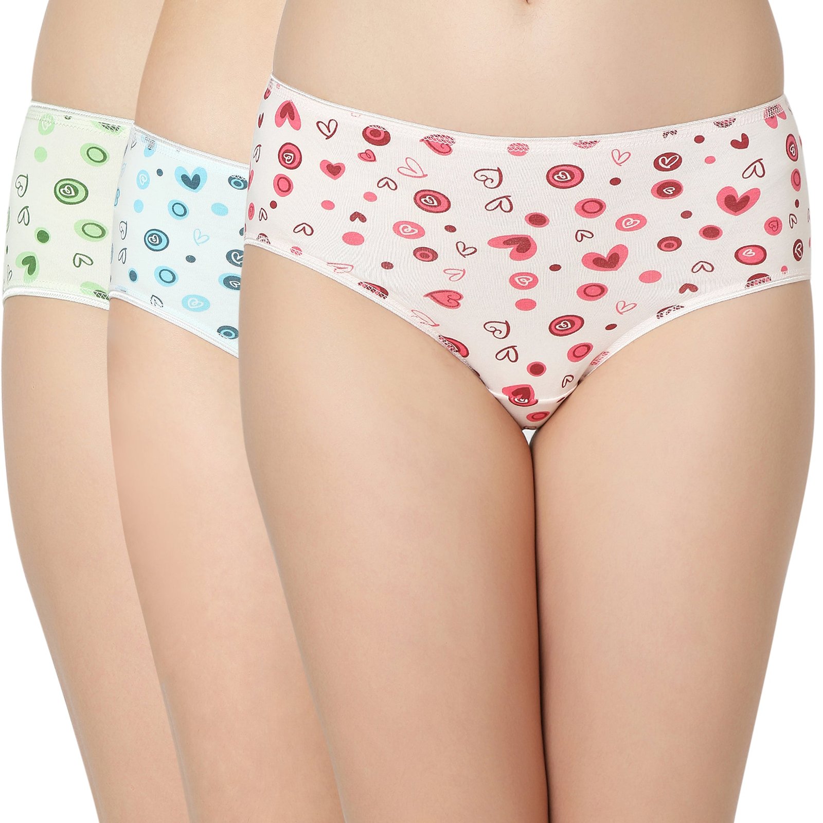 A pack of 3 Cotton Printed Hipster Panties to give your daily underfashion a new color and pattern each day.