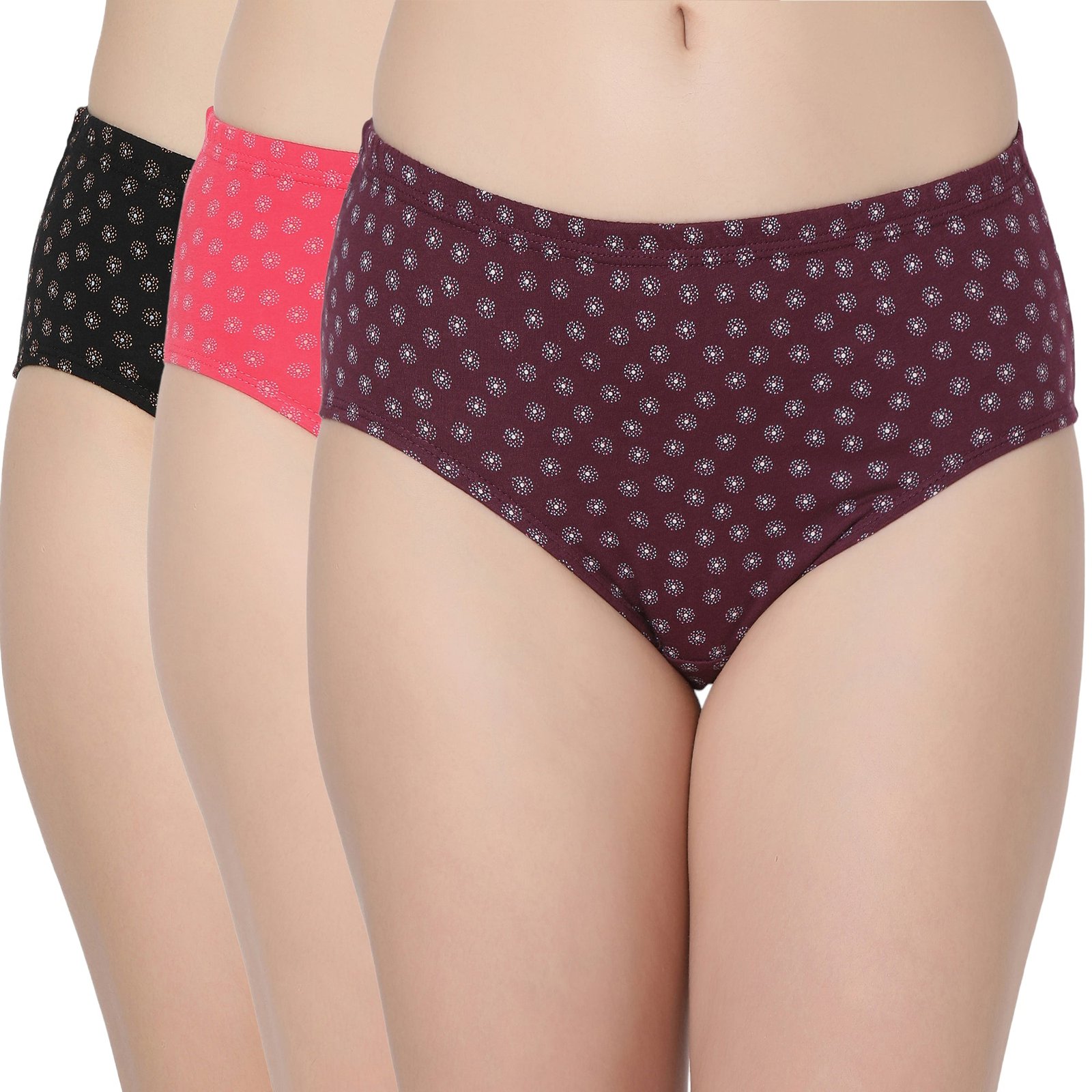 A pack of 3 Cotton Printed Hipster Panties to give your daily underfashion a new color and pattern each day.