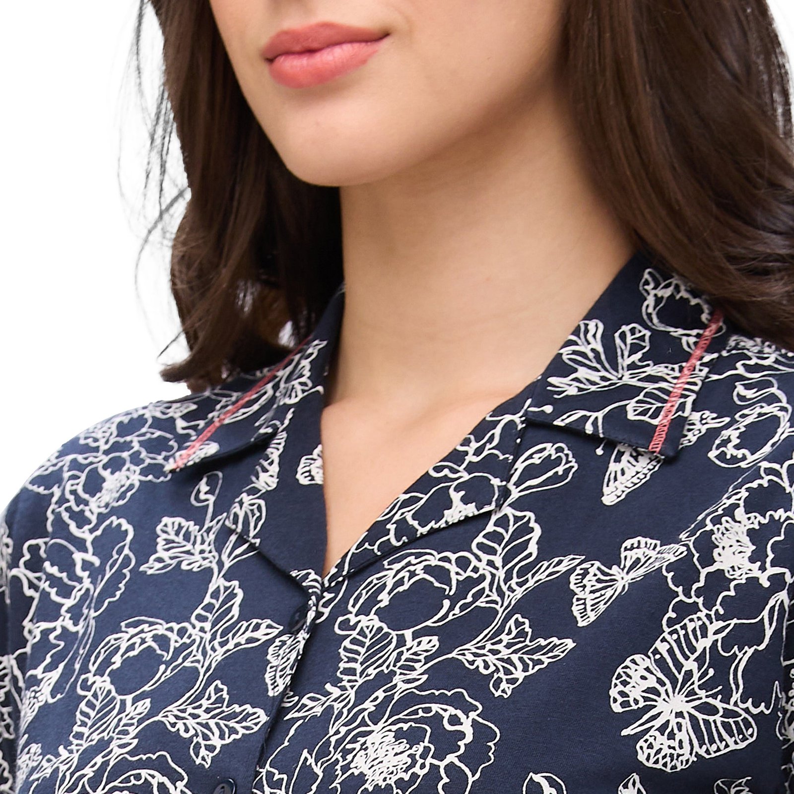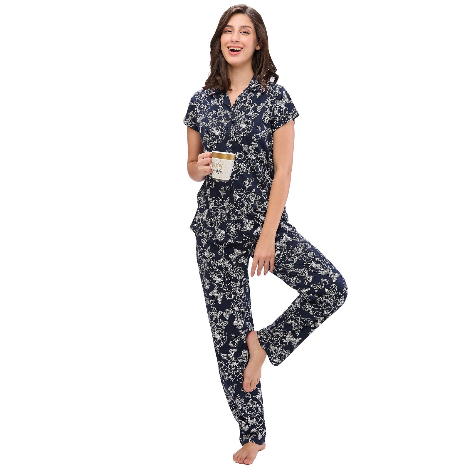Juliet Women’s Printed Premium Cotton Shirt Pyjama Set Night Suit R-PJ-19453 Navy.