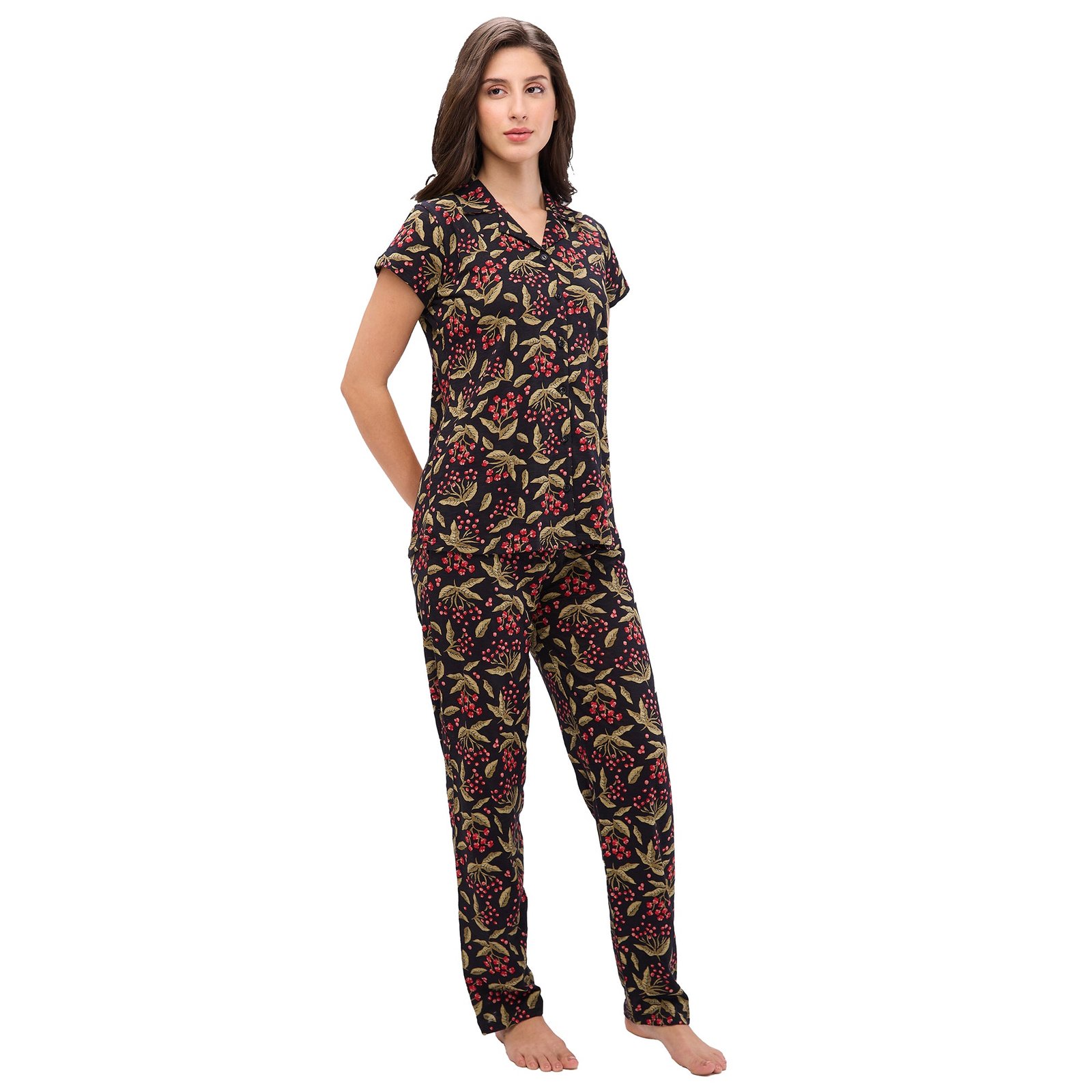 Juliet Women’s Printed Premium Cotton Shirt Pyjama Set Night Suit R-PJ-19430 Black.