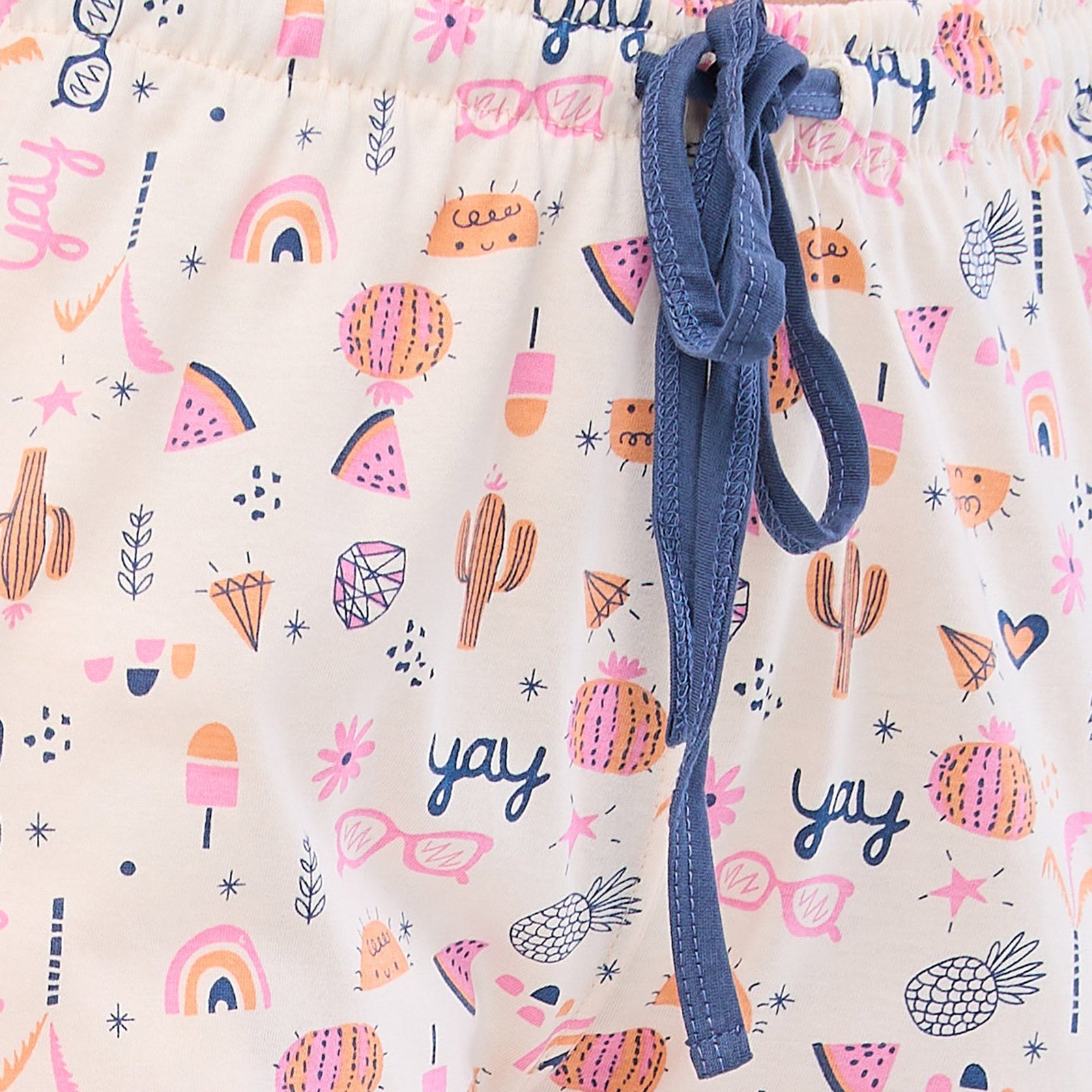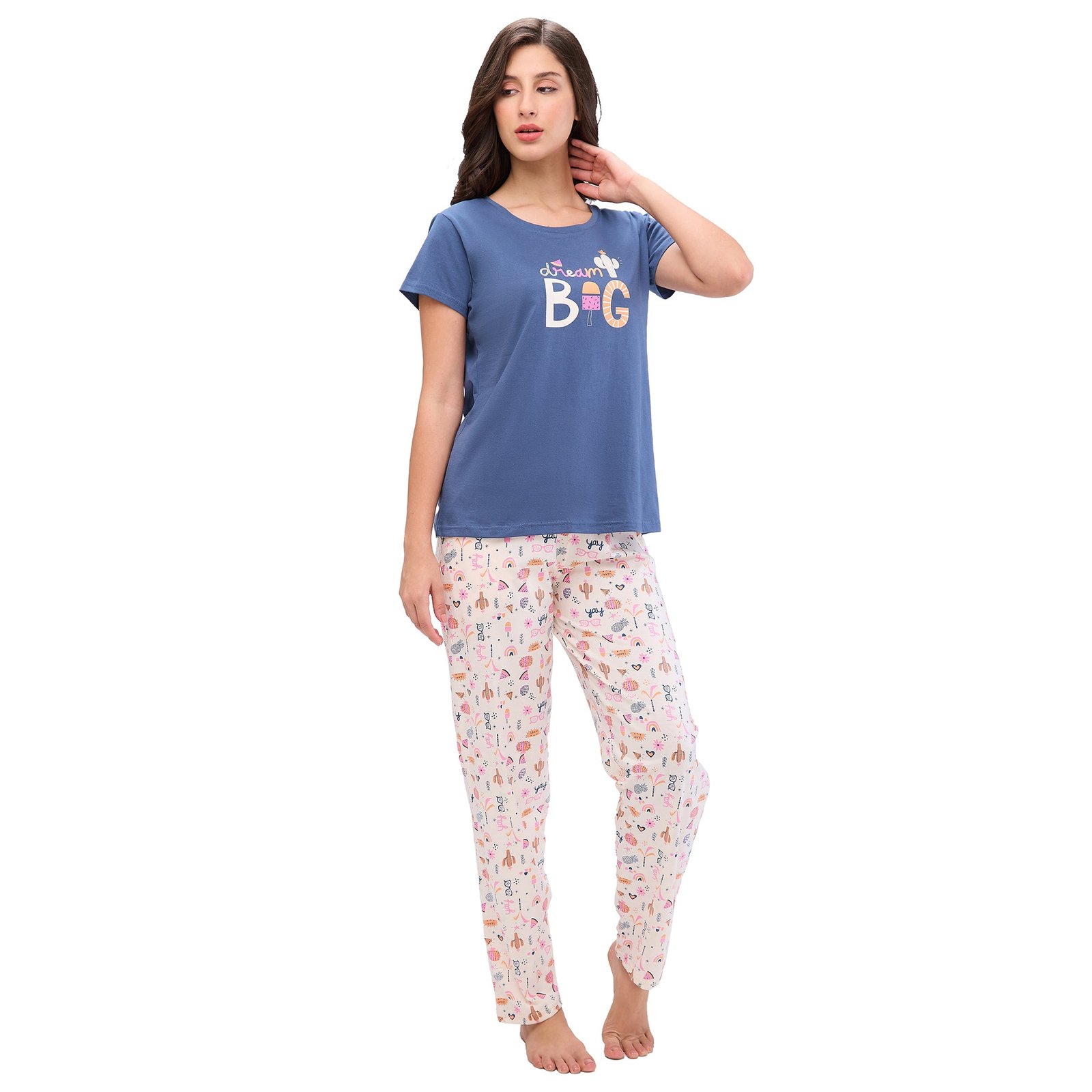 Juliet Women’s Printed Premium Cotton TShirt Pyjama Set Night Suit R-PJ-19444 Blue