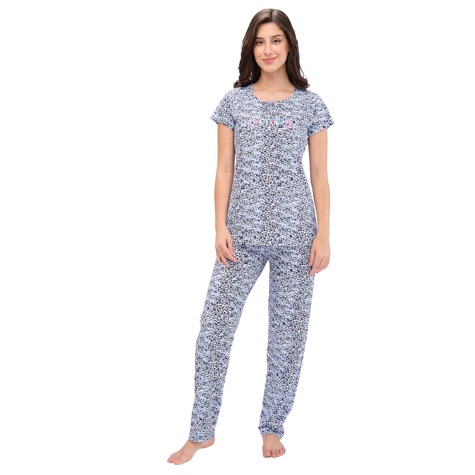 Juliet Women’s Printed Premium Cotton T-Shirt Pyjama Set Night Suit R-PJ-19452 Blue.