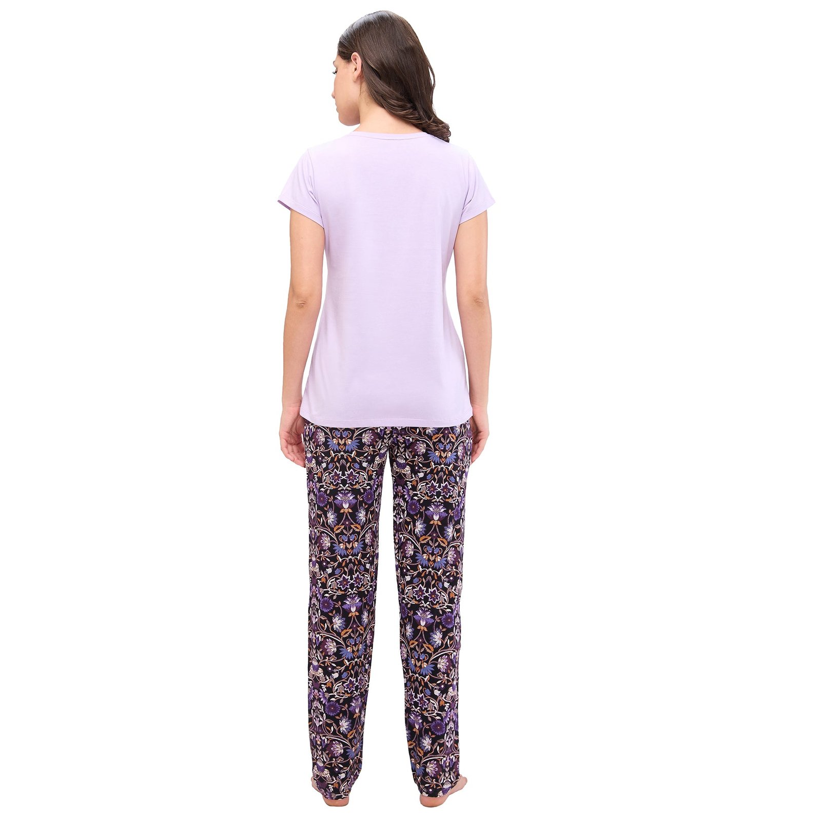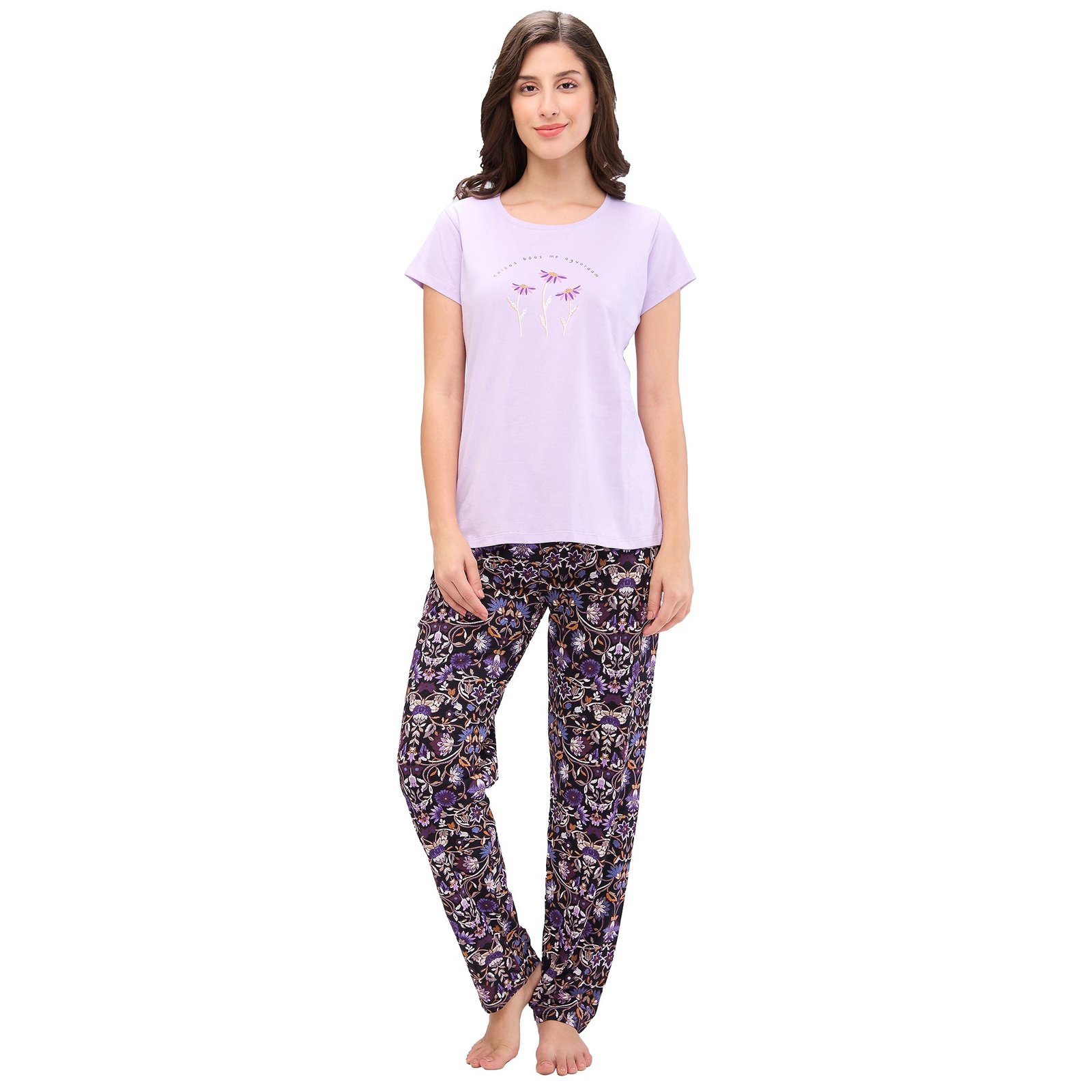 Juliet Women’s Printed Premium Cotton TShirt Pyjama Set Night Suit R-PJ-19463 Lavendar.