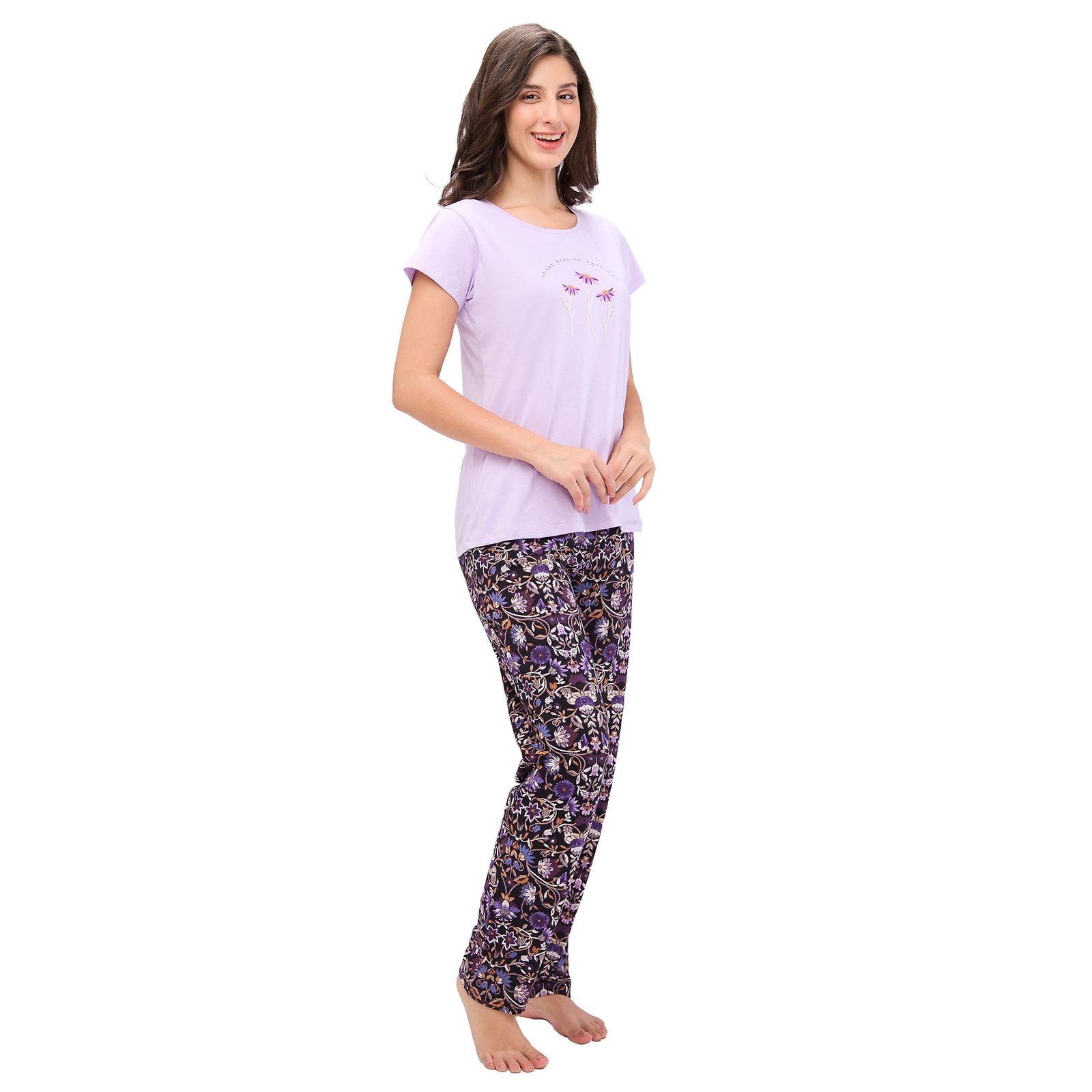 - Two Piece Nightwear For Women (Lavendar Tshirt and Pyjama Set)