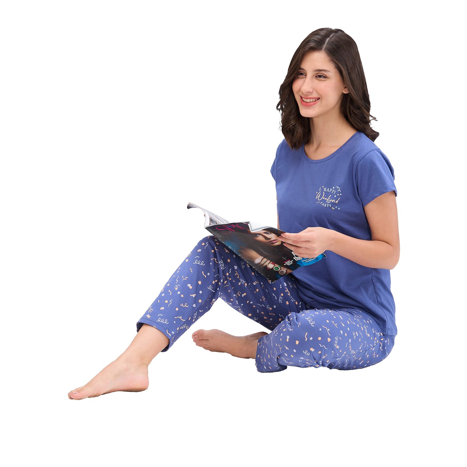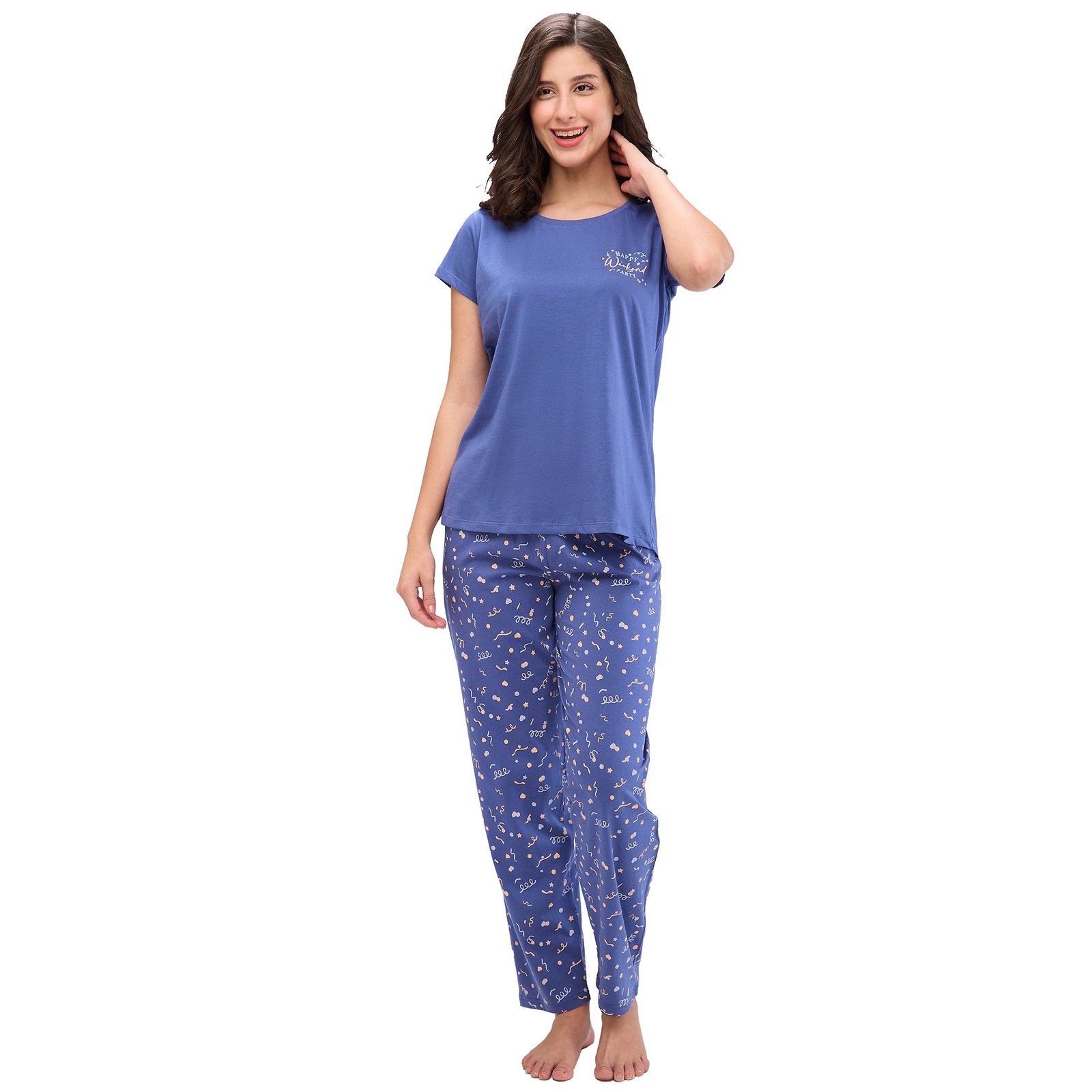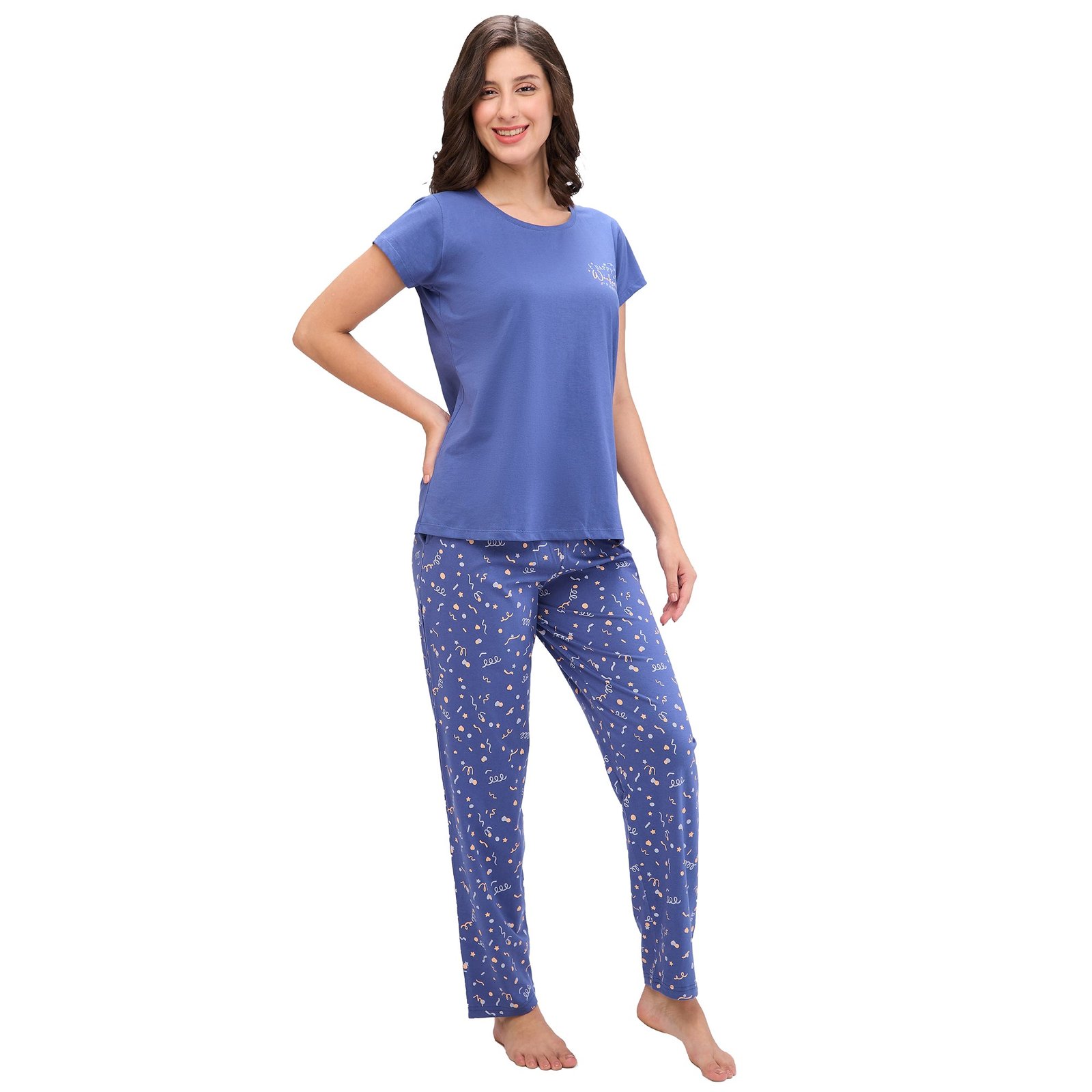 Juliet Women’s Printed Premium Cotton TShirt Pyjama Set Night Suit R-PJ-19445 Blue