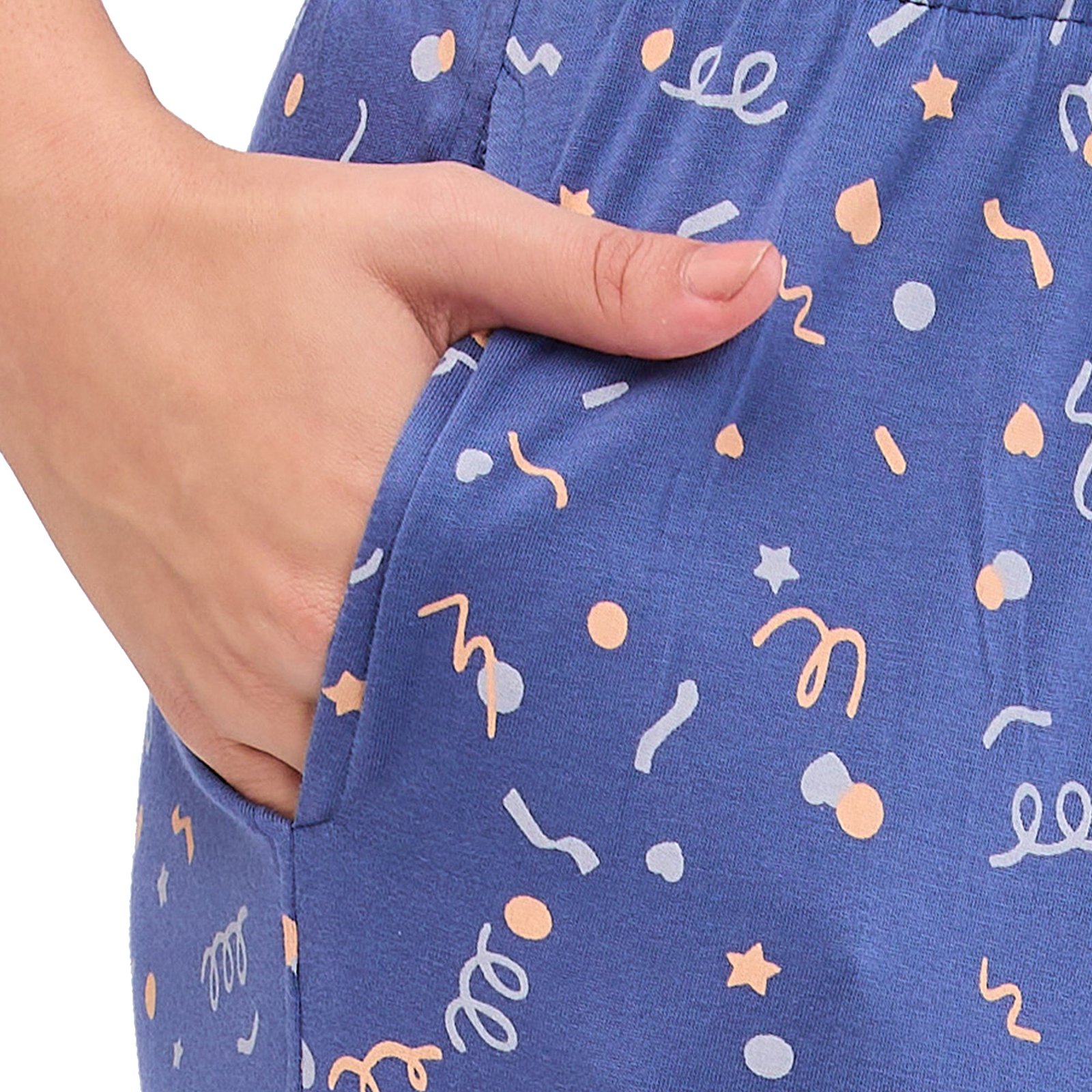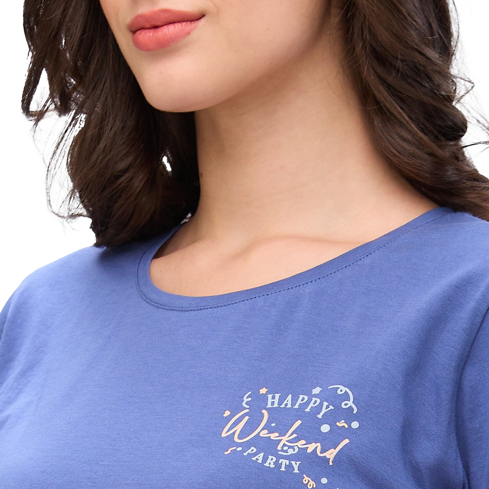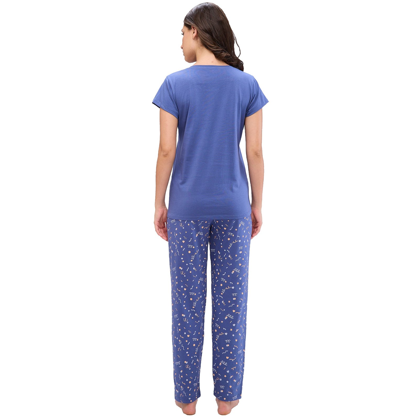 Juliet Women’s Printed Premium Cotton TShirt Pyjama Set Night Suit R-PJ-19445 Blue