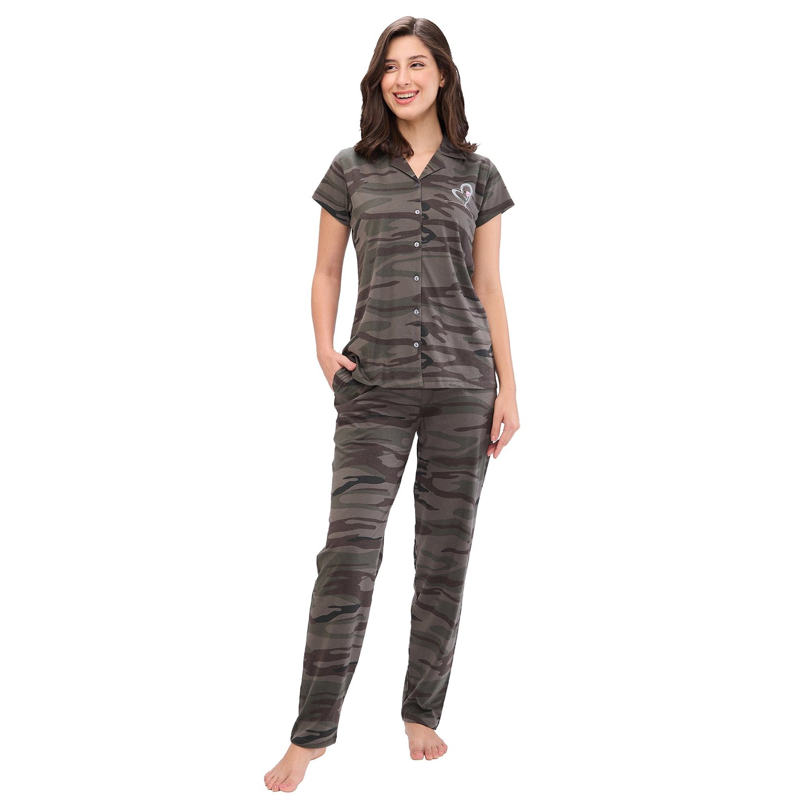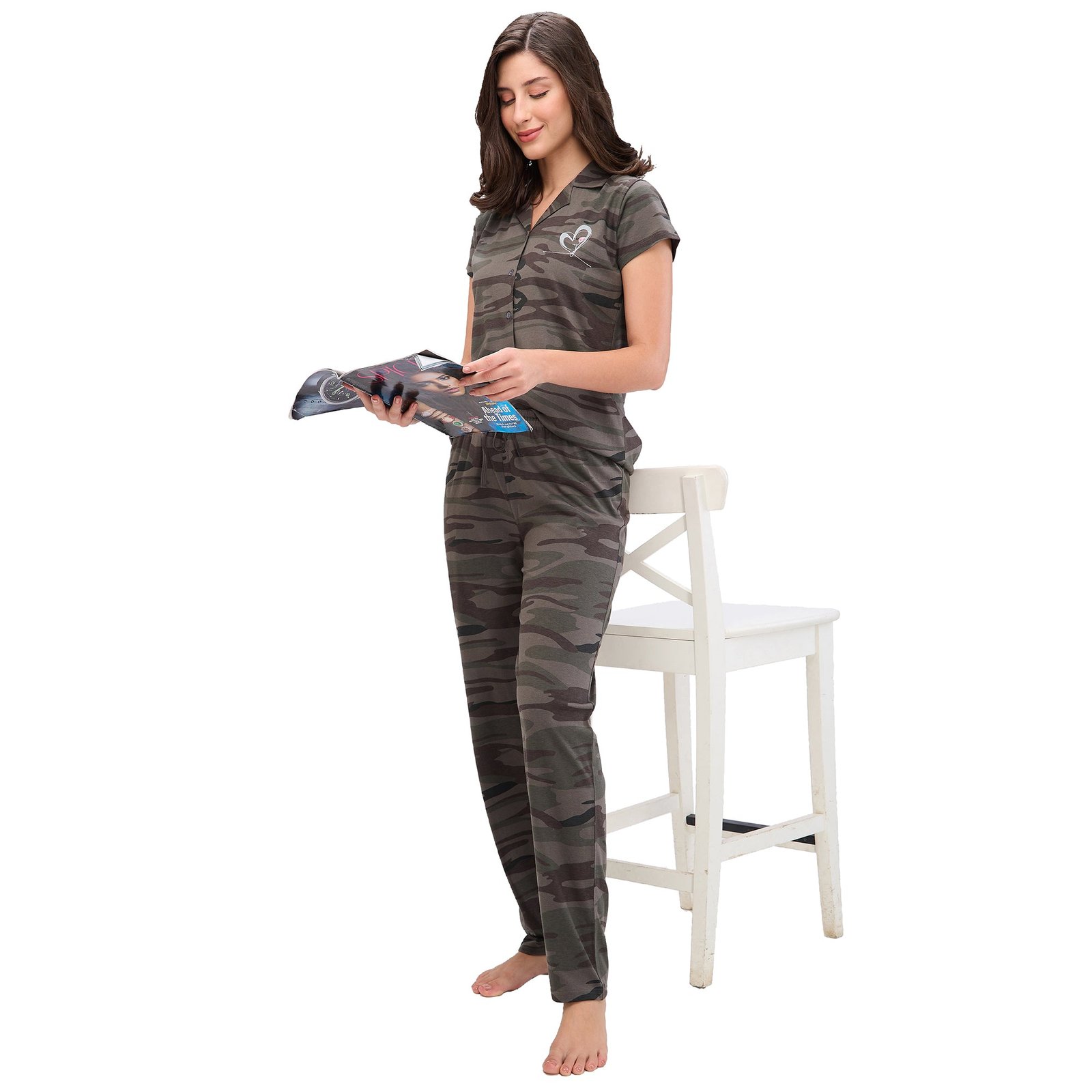 - Two Piece Nightwear For Women (Miletry tshirt and Pyjama Set)